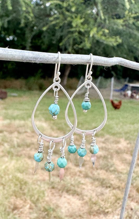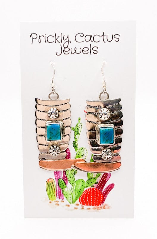 Sterling Silver Copper Turquoise Navajo made Cowgirl Boot Earrings